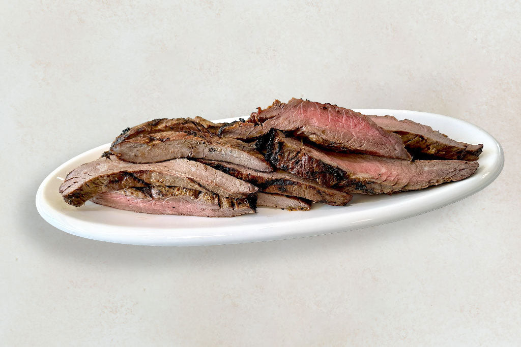 (4oz Servings - Serves 4) Lean Flank Steak, Marinade (Brown Sugar, Dried Oregano, Orange Juice, Dijon Mustard, Salt, Pepper, Red Chili Flakes, Garlic, Tamari, Olive Oil)